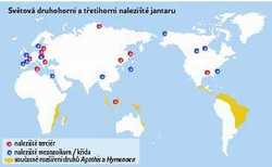 Jantary z období třetihor patří bezesporu k nejrozšířenějším a představují i doposud nejucelenější zdroj informací o životě v dávných ekosystémech. Po baltském jantaru je druhým nejznámějším třetihorním nalezištěm ve vztahu k počtu inkluzí jantar dominikánský. Jeho zdrojem byl kurbaryl Hymenaea protera (Caesalpiniaceae). 7) Pochází ze svrchního oligocénu až spodního miocénu (25–30 milionů let) a svým obsahem fosilií se řadí k nejbohatším. Mexický jantar pochází přibližně z téže doby (22,5–26 milionů let) a měl pravděpodobně i totožného nebo příbuzného producenta pryskyřice.