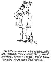 Před lety uspořádali ve Francii anketu, ve které měly ženy odpovědět na otázku, jak si udržet muže. Vyhrála to pouhá tři slova: „Krmte tu bestii.“ To krmení ovšem znamená mnoho chodů, mnoho zeleniny, mořské ryby a jiné lahůdky z moře, ale i roštěnou – a k tomu všemu samozřejmě víno. Nejen každý doušek vína, každé sousto se má pomalu a důkladně vychutnat.