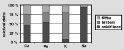 Nejeden našinec žije v představě, že krásné hvozdy naší domoviny začaly strádat až s rozvojem průmyslové výroby, resp. s příchodem kyselých dešťů (viz Vesmír 78, 438, 1999/8). V souladu s tím řada výzkumů označuje za příčinu churavění horských smrčin nedostatek bazických živin (hořčíku, vápníku a draslíku), které se z půd těchto ekosystémů ztrácejí v důsledku depozice kyselých látek z ovzduší (viz rámeček na této straně). To všechno je sice pravda, jenže okyselování půd není jediným mechanizmem, jímž lesní ekosystém o bazické živiny přichází (viz tabulka a obrázek).Celá věc je dávno známá, jen se na ni trochu pozapomnělo. Citelné snížení dostupnosti živin způsobil člověk přímým využíváním lesa, například těžbou dřeva, pastvou, travařením (kosením trávy v lesním porostu), polařením (přechodným zemědělským využíváním lesní půdy), odnosem hrabanky, ba i uřezáváním špiček smrků či jedlí k označení hospod apod. Zvláště to platí o lesích v horských oblastech, které se nacházejí na pomalu zvětrávajících horninách, z nichž se bazické živiny uvolňují velmi pomalu.