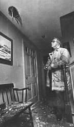 | 5. 2. 1995V učebnicích se tvrdí, že není zaznamenán žádný spolehlivě ověřený případ zabití člověka meteoritem. Historicky je pouze doloženo zranění A. Hodgesové v městě Sylacauga v Alabamě v USA dne 30. prosince 1954 meteoritem o hmotnosti 3,9 kg, který prorazil střechu domu a odrazil se od rozhlasového přijímače na gauč v místnosti, kde žena spala (obrázek). Dne 14. srpna 1992 zasáhl v Mbale v Ugandě drobný meteorit o hmotnosti 3,6 g hlavu chlapce, který však vyvázl bez zranění, neboť meteorit se předtím odrazil od listu banánovníku. Ostatní obyvatelé Mbale měli opravdové štěstí, neboť šlo o krupobití meteoritů na ploše 3 x 7 km2 a nalezené úlomky dosahovaly hmotnosti až 27 kg. Do října 1993 nalezli v terénu celkem 863 úlomků o úhrnné hmotnosti 150 kg.