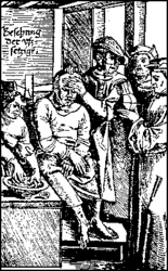 Zpočátku se ani nevědělo, že jde o nemoc pohlavní. Považovala se za "bič boží" a spatřoval se v ní trest za všeobecnou bezbožnost. Dne 7. srpna 1495 vydal německý císař Maxmilián I. svůj pověstný mandát o rouhačství (Kaiserverdikt wider die Gotteslasterer). Mnohá města příklad následovala; bylo zakázáno klíti a hráti v kostky. Představu o syfilidě jako o božím trestu za hříchy podepřela především neznalost jejího původu. Nevědělo se, že především landsknechti se svou ženskou družinou ji roznášeli z místa na místo, ze země do země. Za hlavní příčinu rozšíření epidemie v Evropě se dnes pokládá výprava krále Karla VIII. do Itálie r. 1494.