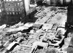 Archeologický výzkum pohřebiště u kostela sv. Benedikta a Norberta v Praze, stav r. 1971, archiv SPP Praha.