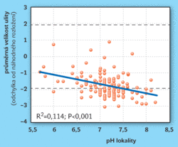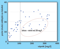 Při studiu více než 170 izolovaných slatinišť Západních Karpat jsme ověřili, že počet druhů plžů, jejich četnost i druhová skladba skutečně silně závisí na vápnitosti prameništní vody. Počet druhů roste od kyselých rašelinišť po pěnovcová slatiniště. Úzký vztah mezi počtem druhů a koncentrací vápníku vzniká však pouze tam, kde je vápníku málo, a kde je tedy pro výskyt některých plžů limitující (obr. 3). Na silně bazických slatiništích už není koncentrace vápníku pro druhovou bohatost důležitá. Vápníku je zde totiž nadbytek a začínají být limitující jiné faktory, například vysoký obsah toxických železitých sloučenin nebo míra narušení člověkem.