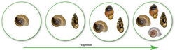 A hned nejnápadnější morfologická vlastnost – velikost těla – se ukázala být významná. Zjistili jsme, že společenstva plžů na slatiništích jsou průkazně menší, než by odpovídalo náhodě (obr. 5). Malé druhy plžů mají fyziologicky mnohem vyšší schopnost snášet přímé působení nízkých teplot, a právě proto na bezlesých slatiništích přežijí spíše drobné druhy. Navíc se ukázalo, že čím je lokalita vápnitější, tím více malých druhů se na ní vyskytuje. Například na bazických slatiništích se může na ploše 50 × 50 cm vyskytovat téměř 200 jedinců celkem 12 různých druhů. Taková velká hustota jedinců je možná právě díky silné převaze miniaturních druhů (obr. 6).