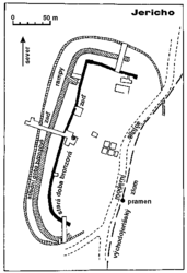 Archeologické výzkumy prokázaly, že se zdi Jericha zhroutily dokonce několikrát. Je téměř jisté, že se tak stalo následkem zemětřesení, protože na východní straně se opevnění města téměř dokonale překrývá s průběhem aktivního zlomu (obrázek). Konec Jericha byl několikanásobný: