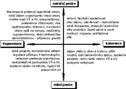Pokouším-li se s onou na začátku deklarovanou nedůvěrou a zvědavostí nějak zhodnotit svoji zkušenost s vytvářením scénářů a brainstormingem, napadá mne několik spíš nesouvislých věcí. Poprvé jsem si uvědomil, jak úzce je normální schůze v normální vědecké instituci svázána s mikropolitikou. V naší zkušenosti světa je obtížné nevytvářet různé boční vazby, neskákat si do řeči a nebavit se se sousedem. Je to proto, že schůze bývá často jen záminkou pro neoficiální, zákulisní jednání, které je nosné. Je obtížné vůbec lidi udržet delší dobu pohromadě. Každou chvíli někdo někam odchází, telefonuje. Jednání je roztříštěné, stále někam utíkáme a jsme unaveni. „V Čechách se nejtvořivější momenty odehrávají v kuloárech,“ říká prof. Lass. Není to totiž ritualizovaný, ale uvolněný prostor. Emoční život se víc odehrává v zaměstnání než doma.K brainstormingu u nás přistupujeme spíš s pochybnostmi, o kterých si myslím, že nejsou jen produktem konzervatizmu, ale také instinktivním poznáním, jak obtížné je přejímat metodu plánování společnosti, která vznikla v jiném sociálním okruhu. Zatímco v západním světě závisí prosperita jedince na prosperitě firmy, má středoevropský, trochu „kafkovsky iracionální“ prostor spíš vazbu na navzájem se ochraňující skupinu „přátel“. (Pozn. red.: viz rovněž S. Komárek: Sto esejů o přírodě a společnosti, Praha 1995, str. 140)