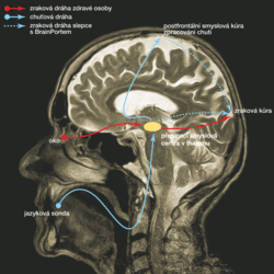 My lidé věnujeme poměrně velkou část výpočetní kapacity svého mozku interpretaci vizuálních podnětů. Platí to jak pro osoby bez handicapu, tak ty, které mají nějakou část cesty signálu z oka do mozku poškozenu. V takovém případě jsme jako počítačové středisko připravené na velký úkol, avšak zadání k výpočtům nepřicházejí. U slepců, kteří jako Erik testovali BrainPort, ukázala funkční magnetická rezonance zvýšenou aktivitu v těch oblastech mozku, kde zpracováváme vizuální podněty, a to i přesto, že tito lidé nepoužívali nic, co by obnovovalo činnost jejich očí nebo nějak navazovalo na zrakový nerv. Jak je to možné?