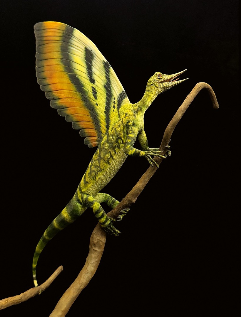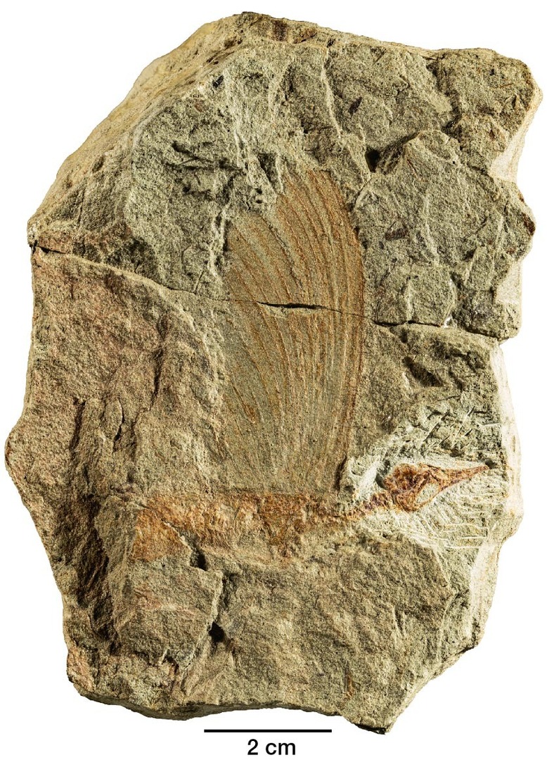 | 29. 9. 2025Šupiny plazů mohou mít různé funkce, od pokryvu těla přes termoregulaci po ochranu před vyschnutím. Nově popsaný druh Mirasaura grauvogeli, nalezený ve Francii a datovaný do období středního triasu, má podél hřbetu vyvinutý výrazný vějíř. Ten není kostěný, jedná se právě o derivát šupin. Na první pohled struktura vypadá jako křídlo, ale k letu pravděpodobně nesloužila. Jako pravděpodobnější se jeví hypotéza, že vějíř sloužil k vizuální komunikaci (k vnitrodruhové signalizaci nebo k odstrašení predátorů). Aby podivností nebylo málo, Mirasaura grauvogeli má chápavý ocas, podobně jako dnešní chameleoni. Fylogenetická pozice tohoto tvora není jasná, pravděpodobně má ale blízko ke stromovému plazu rodu Drepanosaurus či rodu Longisquama, který se vyznačuje velmi podobným hřbetním vějířem. Nález tak potvrzuje vysokou disparitu triasových plazů a jejich kožních derivátů.