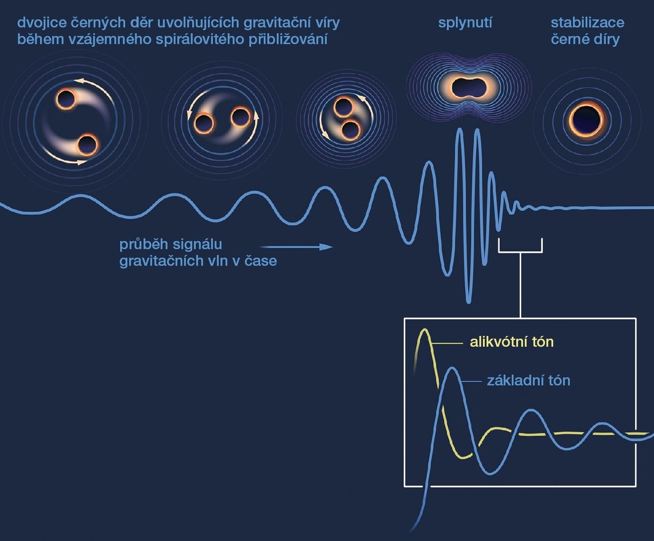 Podobně jako struna na kytaře i černá díra mimo rovnovážný stav „zvoní“ jednou dominantní frekvencí a vyššími, alikvotními tóny. Každý tón je popsán nejen svou frekvencí, ale také tlumením, které nám říká, jak rychle tón odeznívá. Vztah frekvencí a tlumení alikvotních tónů vůči základnímu vypovídá o vlastnostech a tvaru černé díry a jejich pozorováním lze určit, zda odpovídá Kerrovu řešení Einsteinových rovnic, které popisuje rotující černou díru v obecné teorii relativity. Tím lze ověřit, zda černá díra skutečně „nemá vlasy“: tedy je plně určena svou hmotností, momentem hybnosti a elektrickým nábojem.