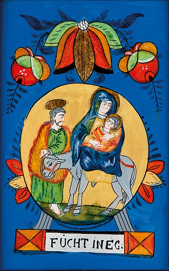 Jedinečnou součástí etnografické podsbírky je konvolut více než stovky podmaleb na skle s postavami či scénami ze života Ježíše, Panny Marie a oblíbených světců, které vznikaly v lidových dílnách od konce 18. do začátku 20. století.2)