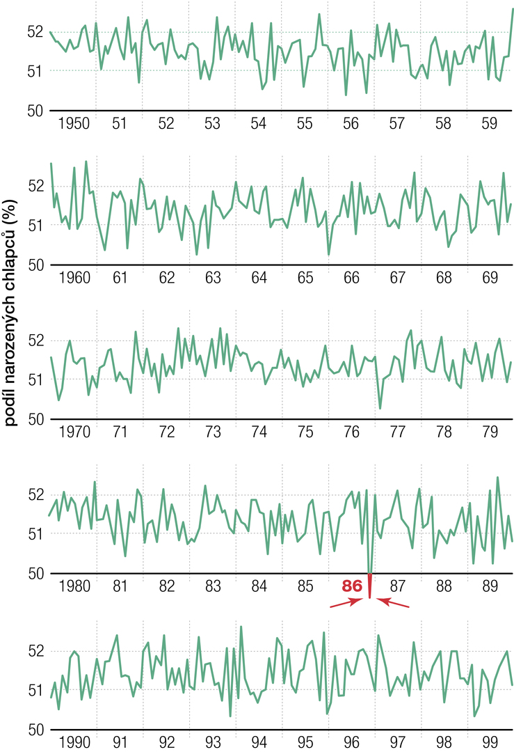 Radioaktivní, či lépe ionizující záření a jeho vliv na živé organismy jsou zdrojem univerzální fascinace široké veřejnosti a badatelského zájmu řady odborníků. Dokumenty mapující devastující následky jaderných výbuchů v Hirošimě a Nagasaki dodnes vzbuzují morbidní zvědavost. Ještě živějším tématem zůstává čornobylská havárie, což dokazuje i nebývalá popularita televizní minisérie Černobyl z roku 2019. Není tak překvapivé, že řada vědců, kteří se zajímají o poměr pohlaví při narození a o faktory, které tento poměr ovlivňují, ve své práci zohlednila také vliv radiace. Výsledky na první pohled vypovídají o výraznějším dopadu na životaschopnost zárodků ženského pohlaví a porodnosti vychýlené ve prospěch chlapců. Na druhou stranu, podle českých výzkumů se roku 1986 v Československu narodilo o více než 400 chlapců méně, než bychom čekali. Kdo má tedy pravdu?