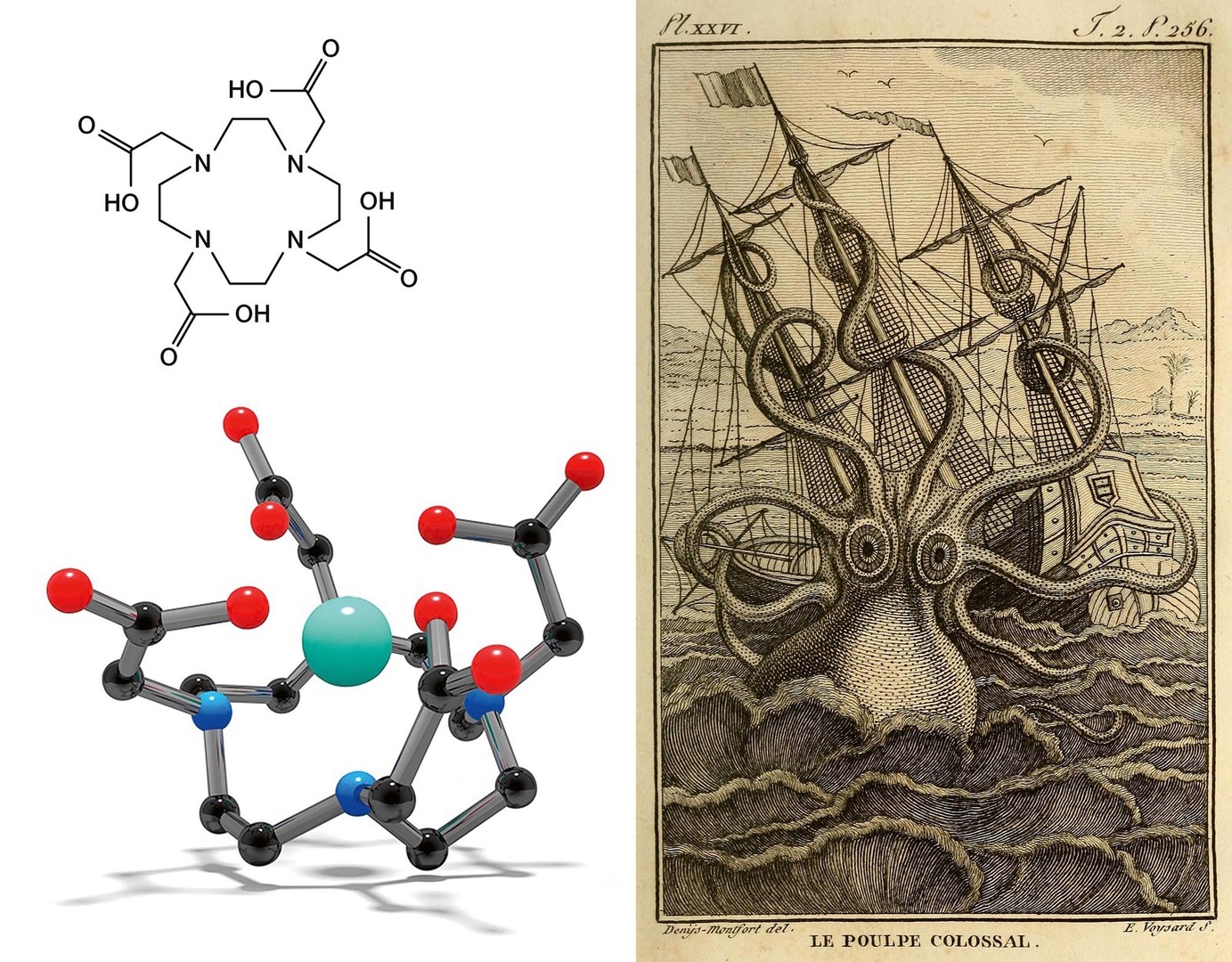 Lanthanoidy se ve vodě vyskytují téměř vždy jako trojmocné ionty Ln3+. Jejich koordinační vazby jsou poměrně slabé, ale když se jich vytvoří sedm až deset najednou, dohromady drží ion kovu poměrně pevně. Chelátor tak připomíná spíš chobotnici než krabí klepeto: několik „chapadel“ se obtočí kolem kovu a nepustí ho.
