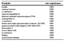Tato myšlenka byla velmi úspěšná. Produkce některých peptidů v množství 4 g na litr mléka není dnes vzácností. V tab. II uvádím některé příklady (podle Gen. Eng. News 15, (18):8, 1995).